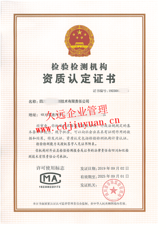 檢驗檢測機構資質認定證書(CMA)